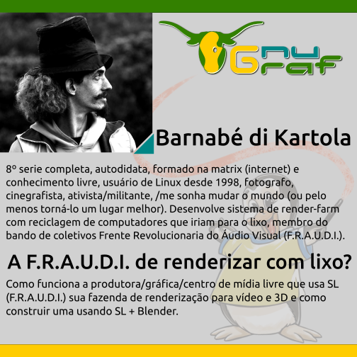 Para quem ainda não conhece o GNUGRAF, ele é o primeiro evento de computação gráfica com software livre do Brasil. O evento é totalmente direcionado para profissionais da área de Áudio, Animação, Vídeo, Produção Gráfica e Design de Jogos.
